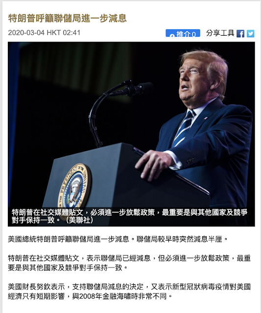 像網友傳給我的短訊~人生呀!大家有幸再次看到一次經濟危機,但要有心理準備,這只是開始,未來十年,2020-2032我們大有可能看到馬田說的Big Bang,債務崩塌,到時就不只是今天這種危機小菜了,連美元都會出現危機。始於2011年始於2016年的聯儲局的量化寬鬆救市(QE)已證明失敗,危機再度爆發,政府可以壓着長期息口,可以壓着官方利率,卻左右不了短息,壓不了私人利率。